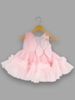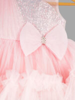 Turn every moment into a fairytale with our Princess Blush Sparkle Tutu Dress. This soft pink frock features a one-shoulder design with shimmering sequin detailing on the bodice and pleated mesh for a graceful touch. The voluminous layered tutu skirt is made with delicate tulle ruffles, perfect for twirls and giggles. Finished with a sweet oversized bow adorned with a sparkly centre, this dress is ideal for your little star’s most magical occasions.